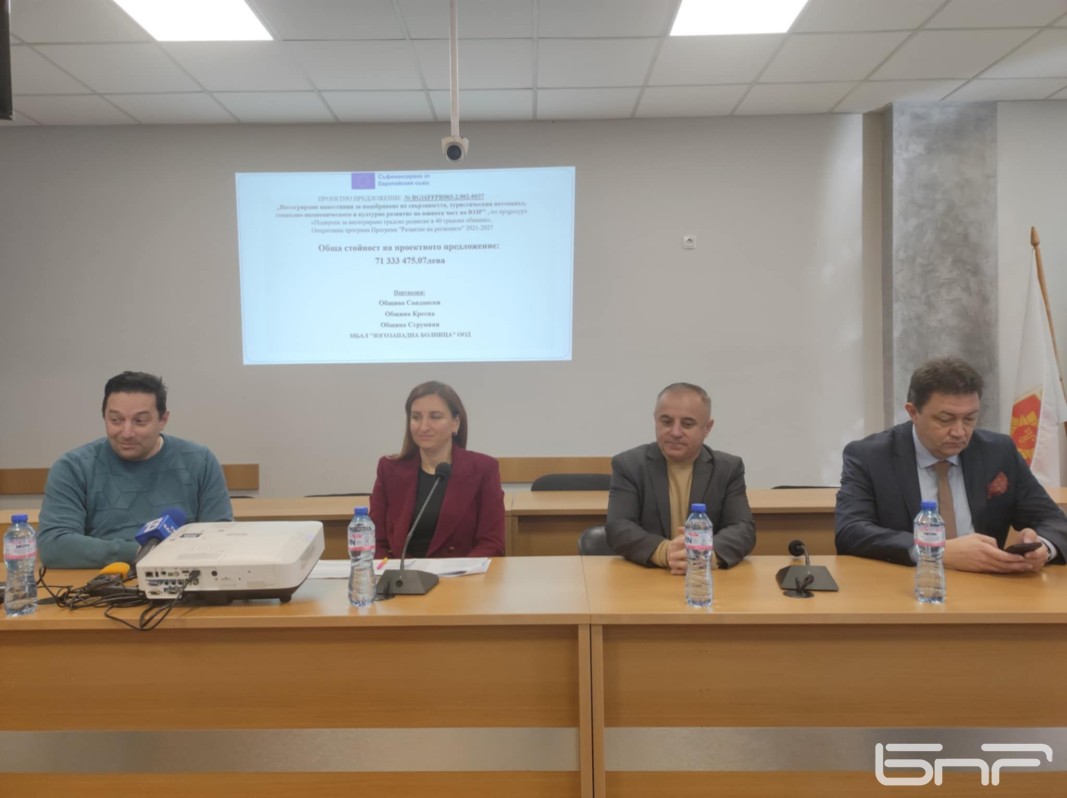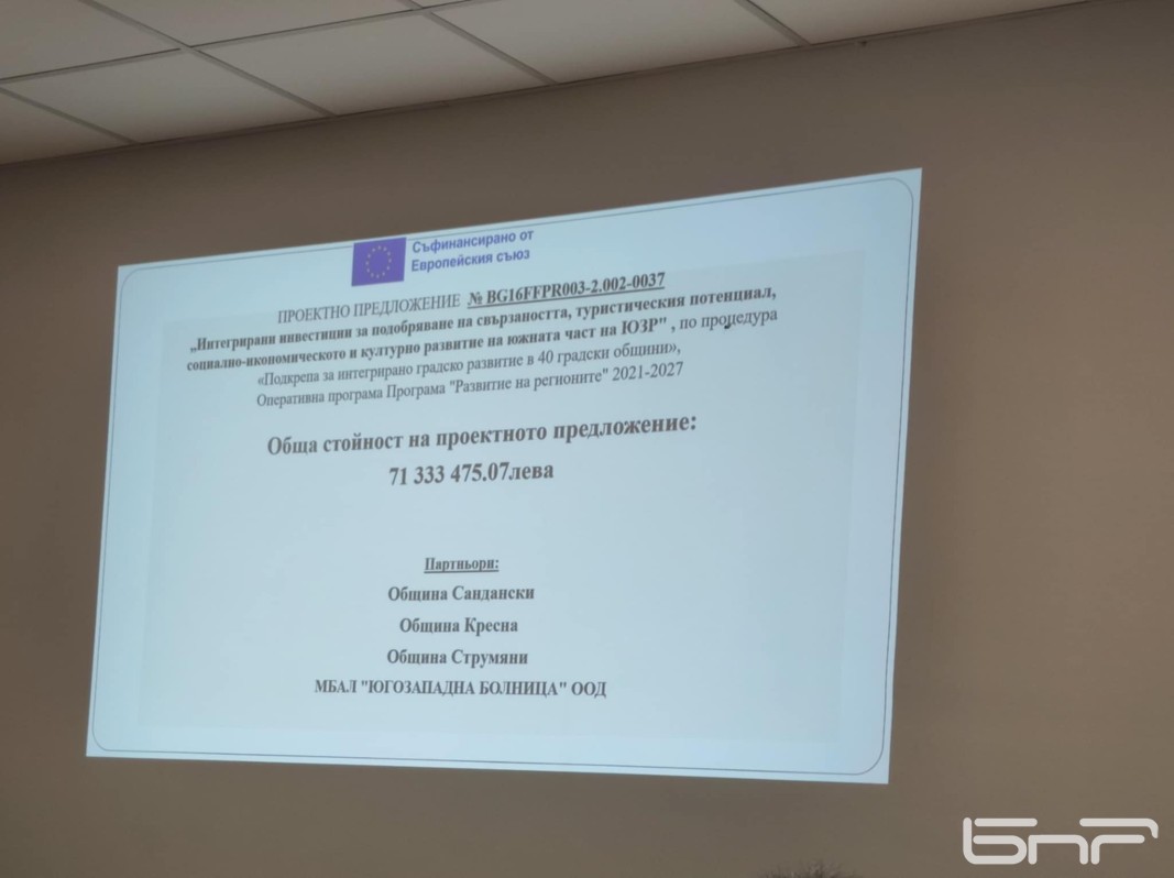 Проектите са общо 16. Те включватдейности по подобряване на свързаността, туристическия потенциал, социално-икономическото и културно развитие на южната част на Югозападния район. Редица туристически обекти с историческо и културно значение са включени в концепцията. Югозападната болница пък ще получи линейки – мобилни кабинети с дефибрилатори. Кметовете на общините Сандански и Петрич акцентираха върху добрата съвместна работа. Атанас Стоянов.