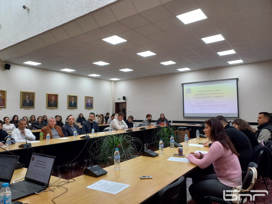 Югозападният университет „Неофит Рилски“ в Благоевград и немският изследовател д-р Мориц Баумгертел работят по проект на Министерството на образованието и науката за правата на мигрантите в Европа. Ректорът на учебното заведение проф. Николай Марин и д-р Мориц Баумгертел очертаха пред студенти и докторанти предизвикателствата пред международната общност в условията на сложната геополитическа обстановка.