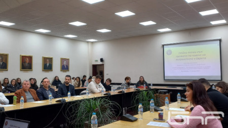 Проф. Николай Марин представи д-р Мориц Баумгертел от Германия – изследовател по ННП „Петър Берон“ към Фонд „Научни изследвания“ към Министерството на образованието и науката, който работи по темата за правата на мигрантите заедно с ЮЗУ.
