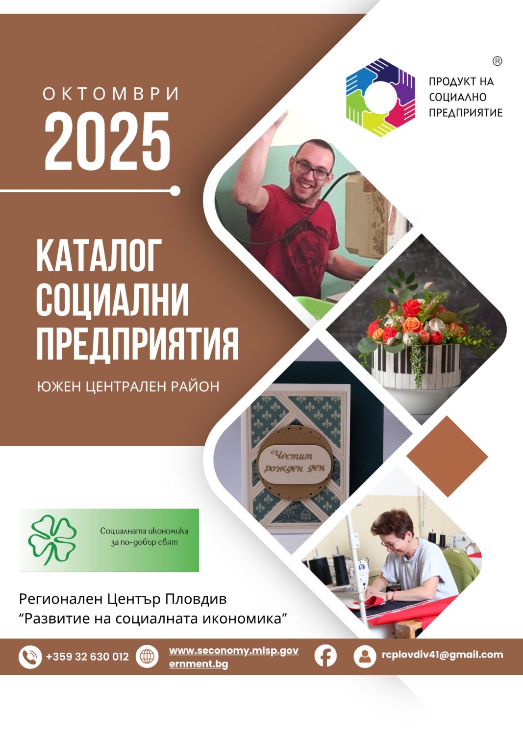 Каталог на социалните предприятия в Южен централен район – издание издаде Регионалнният център „Развитие на социалната икономика“ – Пловдив.  Изданието е насочено както към бизнеса, който търси партньори с кауза, така и към всеки човек, който вярва, че чрез своя избор може да подкрепи положителната промяна.