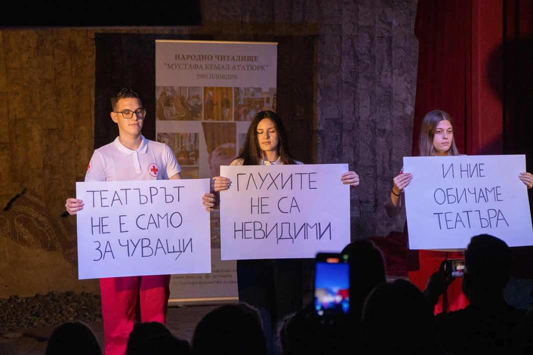 Как Народно читалище "Мустафа Кемал Ататюрк - 2003" - Пловдив помага на глухи и чуващи да общуват и да развиват актьорски умения? Това се случва чрез проекта "Инклузивно обучение по актьорско майсторство за глухи и чуващи".