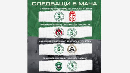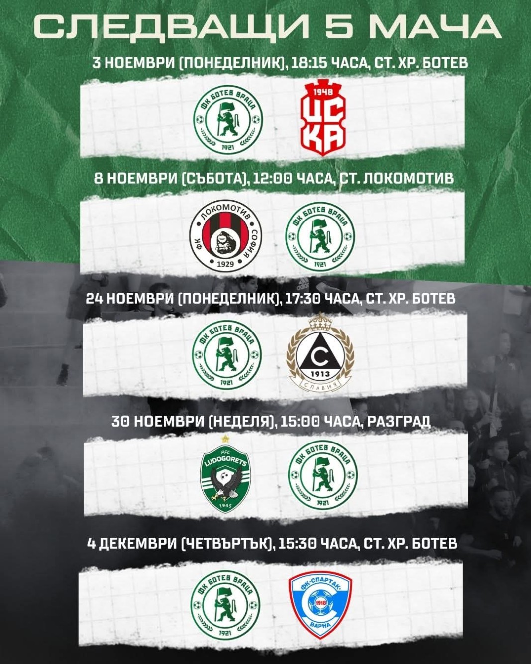 В края на месеца – на 30 ноември, на врачани им предстои гостуване в Разград на шампиона Лудогорец.